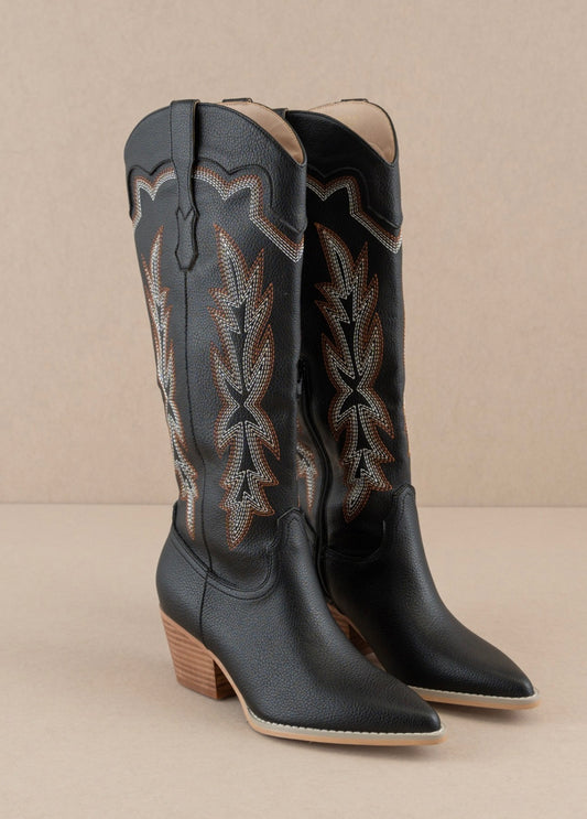 Aisley Embroidered Cowgirl Boots-Black