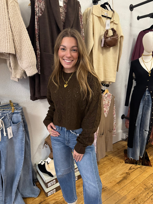 Sold outThe Cocoa Crest Cable Knit Sweater