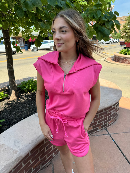 Tory Tie Sweat Shorts-Pink