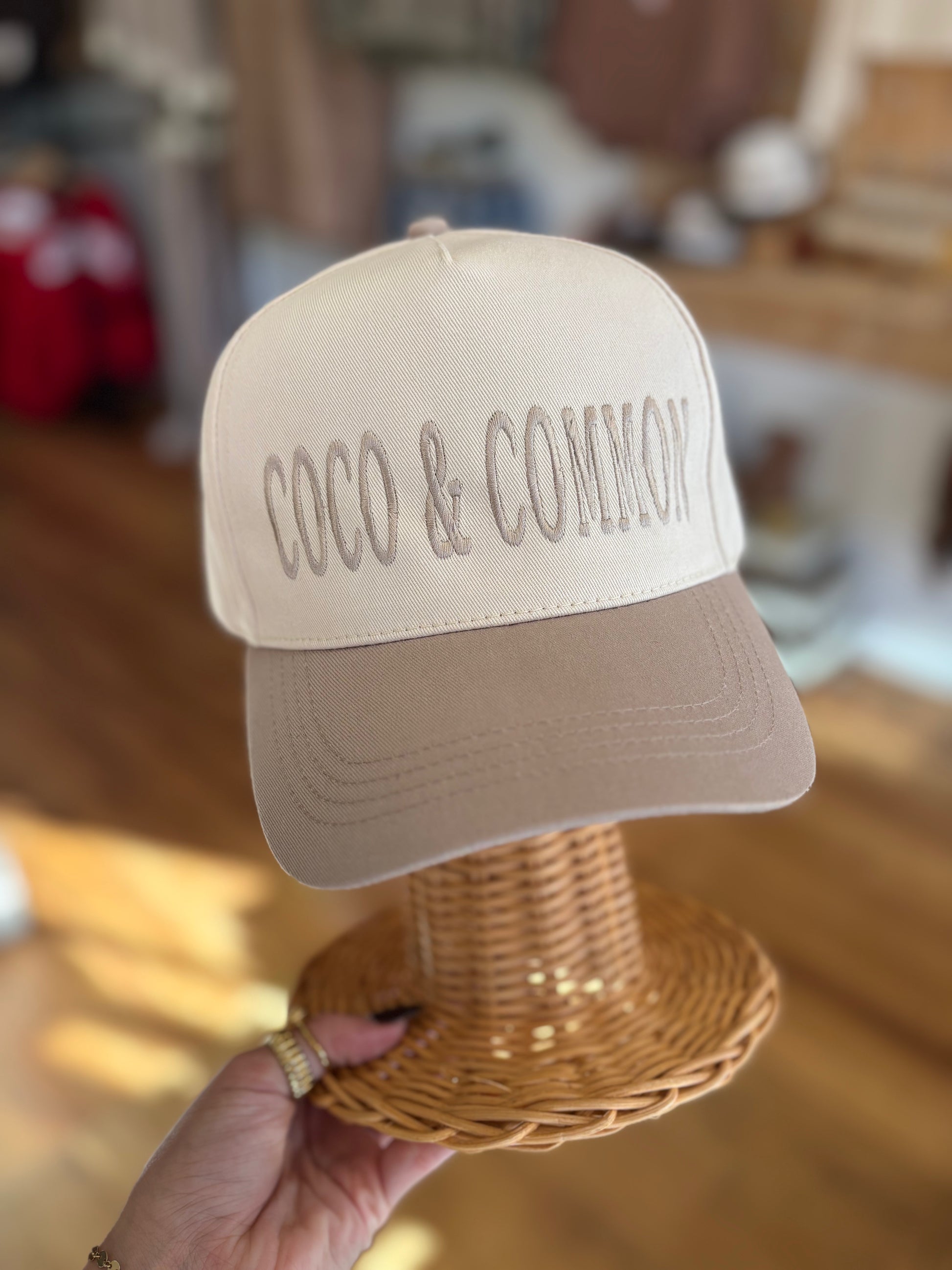 Effortlessly neutral and endlessly chic — the Coco & Common Trucker Hat is a must-have for your everyday look. Designed in soft cream and taupe tones, this minimalist cap features tonal embroidered lettering for a clean, elevated finish. The structured front and adjustable snapback make it as comfortable as it is stylish — perfect for casual days, coffee runs, or weekend markets.