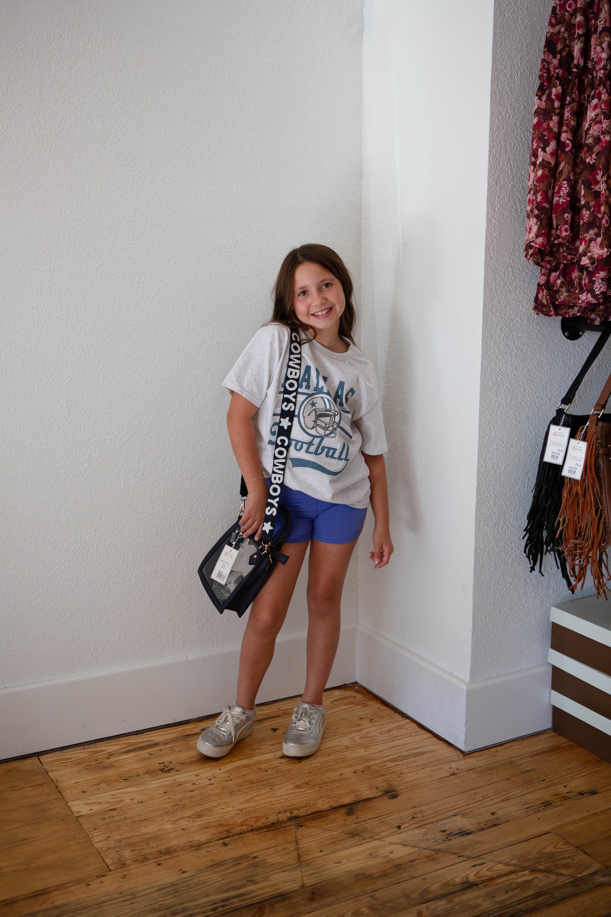 Navy blue and solid white Dallas Cowboy beaded bag strap, gold accent attachments, non adjustable, Dallas Cowboys Football team themed.