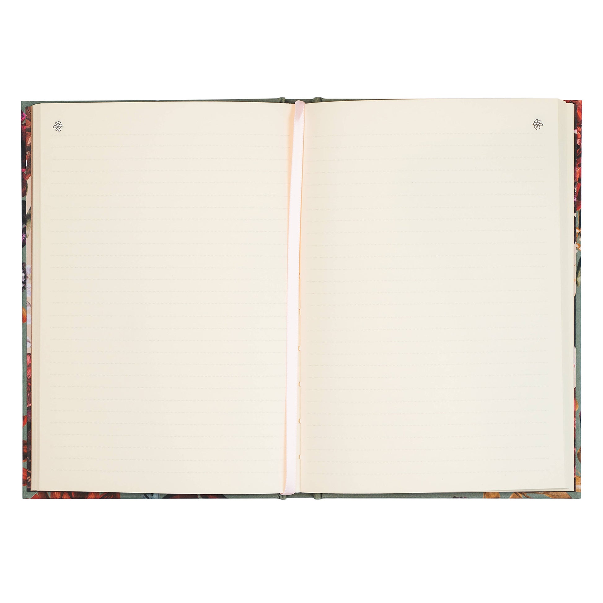 Product Details - 150 pages (lined) - Paper weight: 100gsm - Dimensions: 5.75" x 8.25" - Cloth over board cover - Satin ribbon
