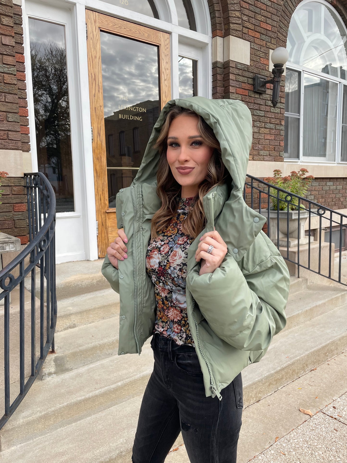 This puffer jacket is made with a luxurious matte buttery feel fabric.