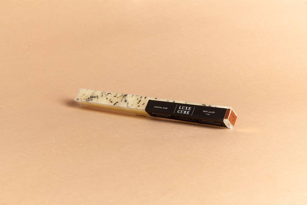 A shot of whiskey, powdered ice, and cube then voila you have an instant Mint Julep! One cube packs all the minty goodness to make for a quick drink on the go, at home, or in the air!