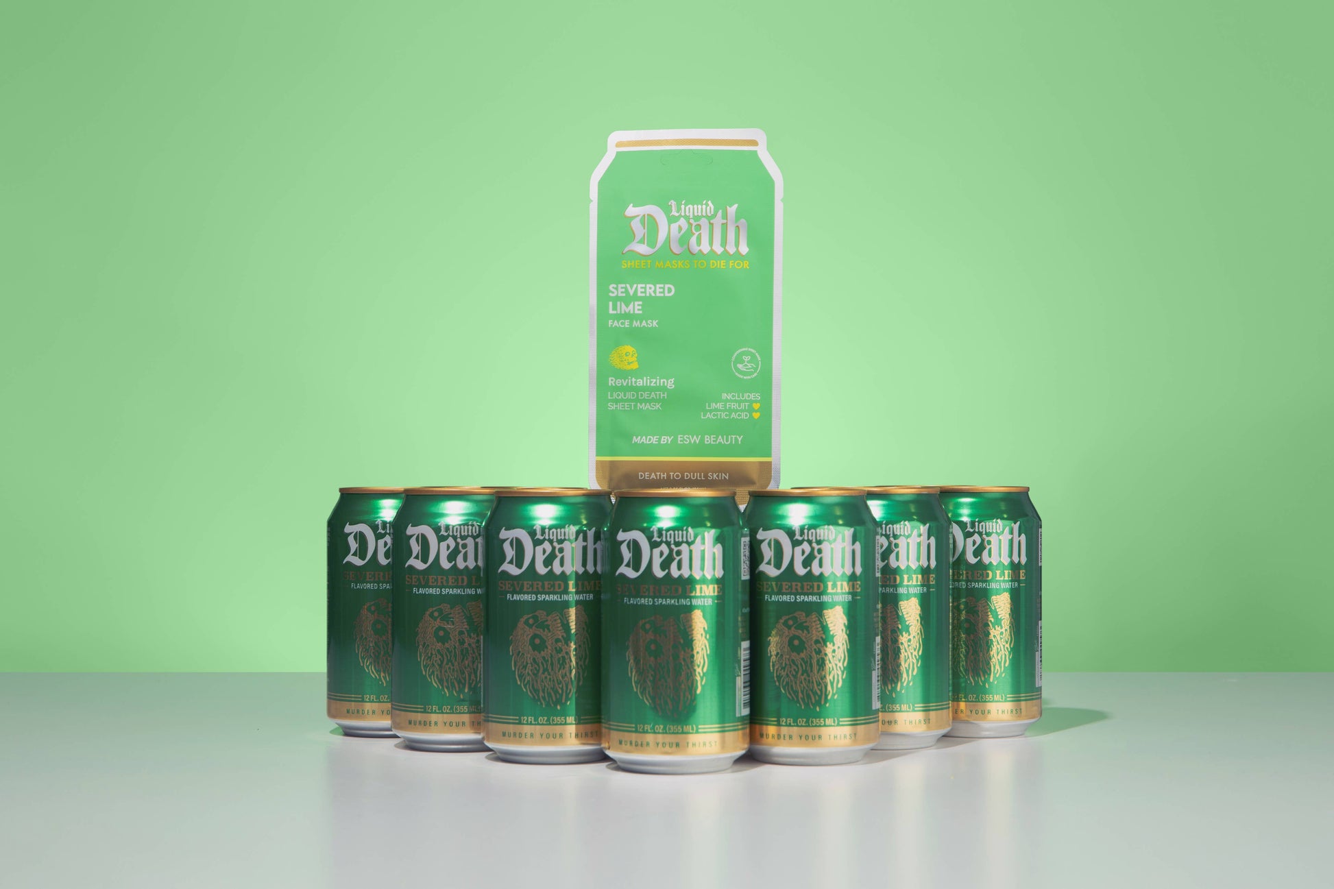 Revive your skin from the dead with Severed Lime, a skin-awakening sheet mask inspired by Liquid Death that exfoliates, purifies, and re-energizes your complexion. Infused with cooling glacier water and packed with powerful fruit enzymes, vitamins, and botanical actives, this treatment smooths texture, brightens tone, and breathes life back into tired, lackluster skin.